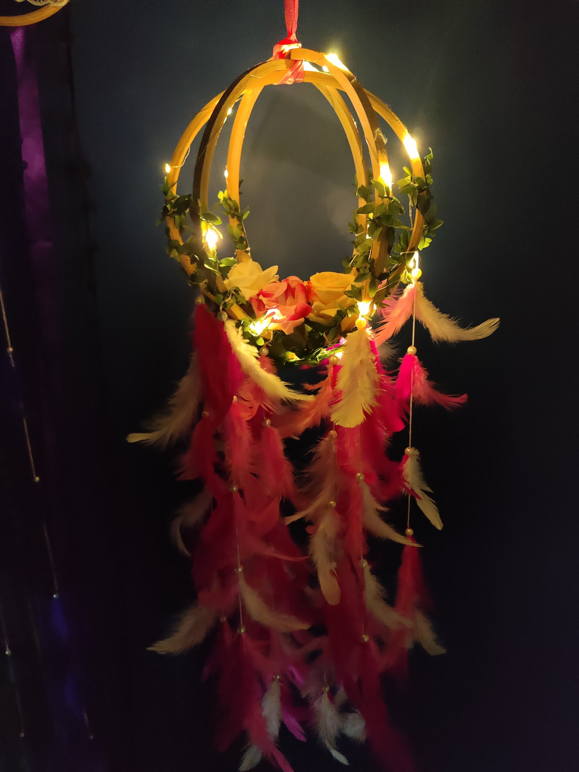 3D floral hanging 8" Dreamcatcher with Feathers