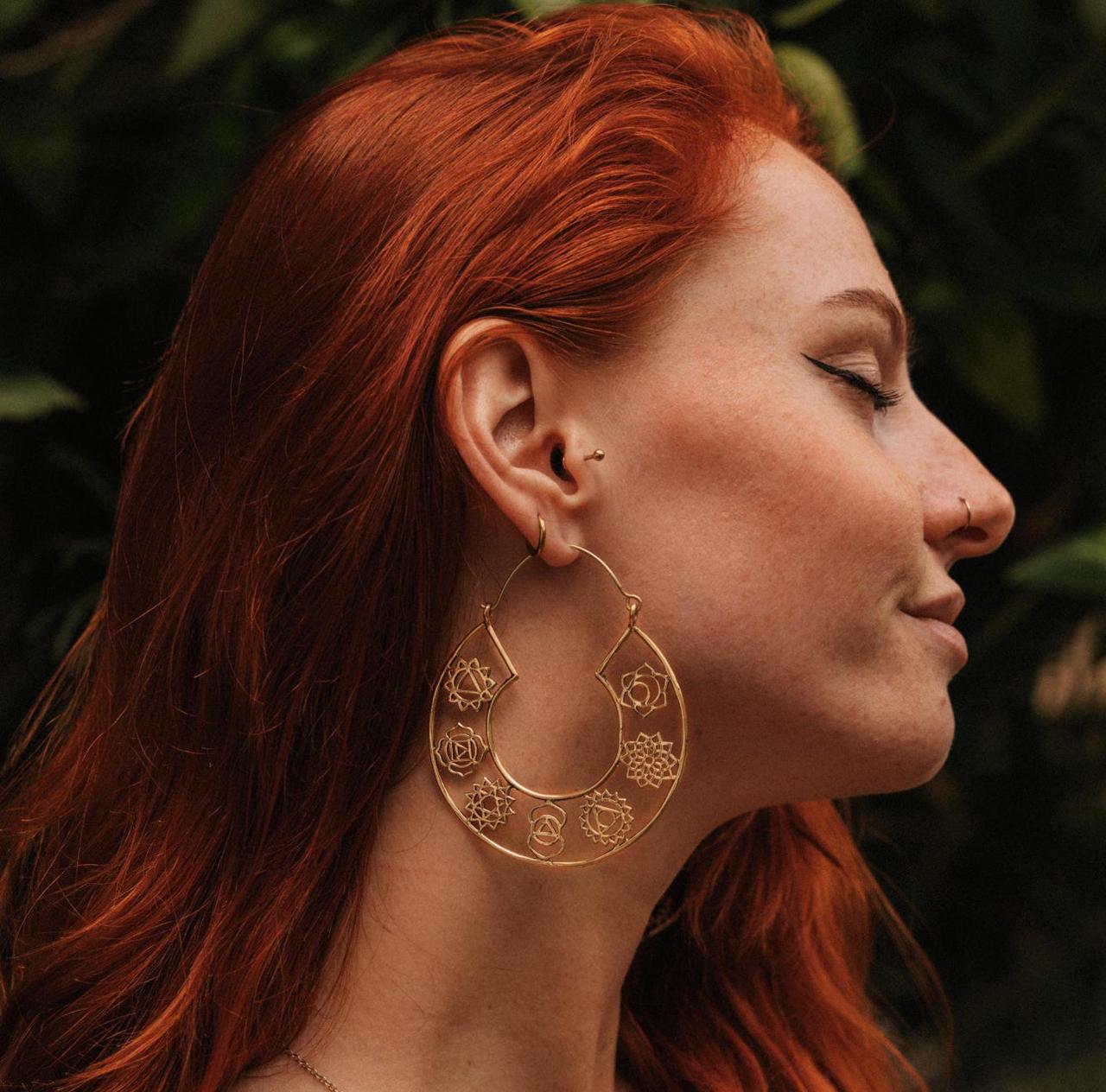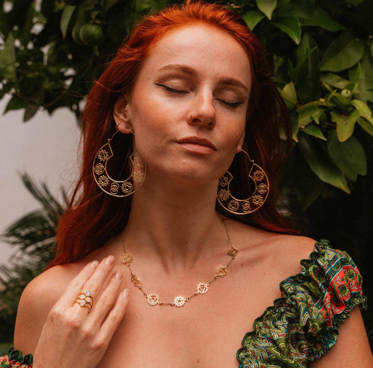 Experience holistic balance with our Cosmic Chakra Hoops and Necklace Crafted in pure brass, these earrings promote physical and emotional well-being. Achieve inner harmony and vitality with every wear.
