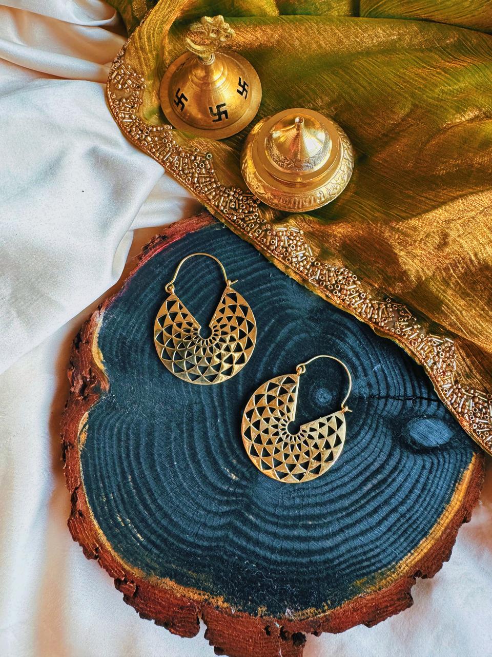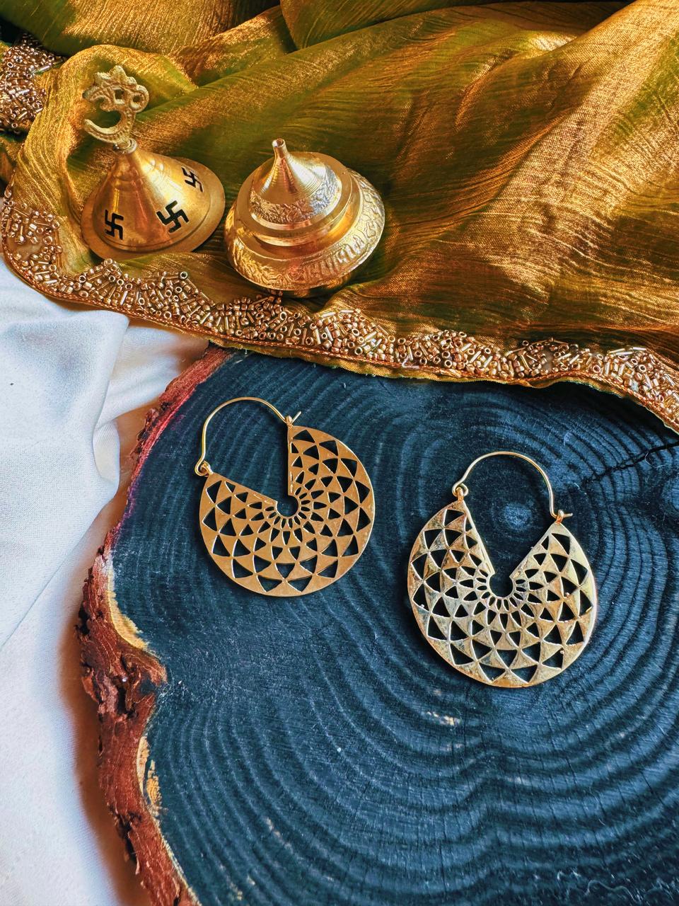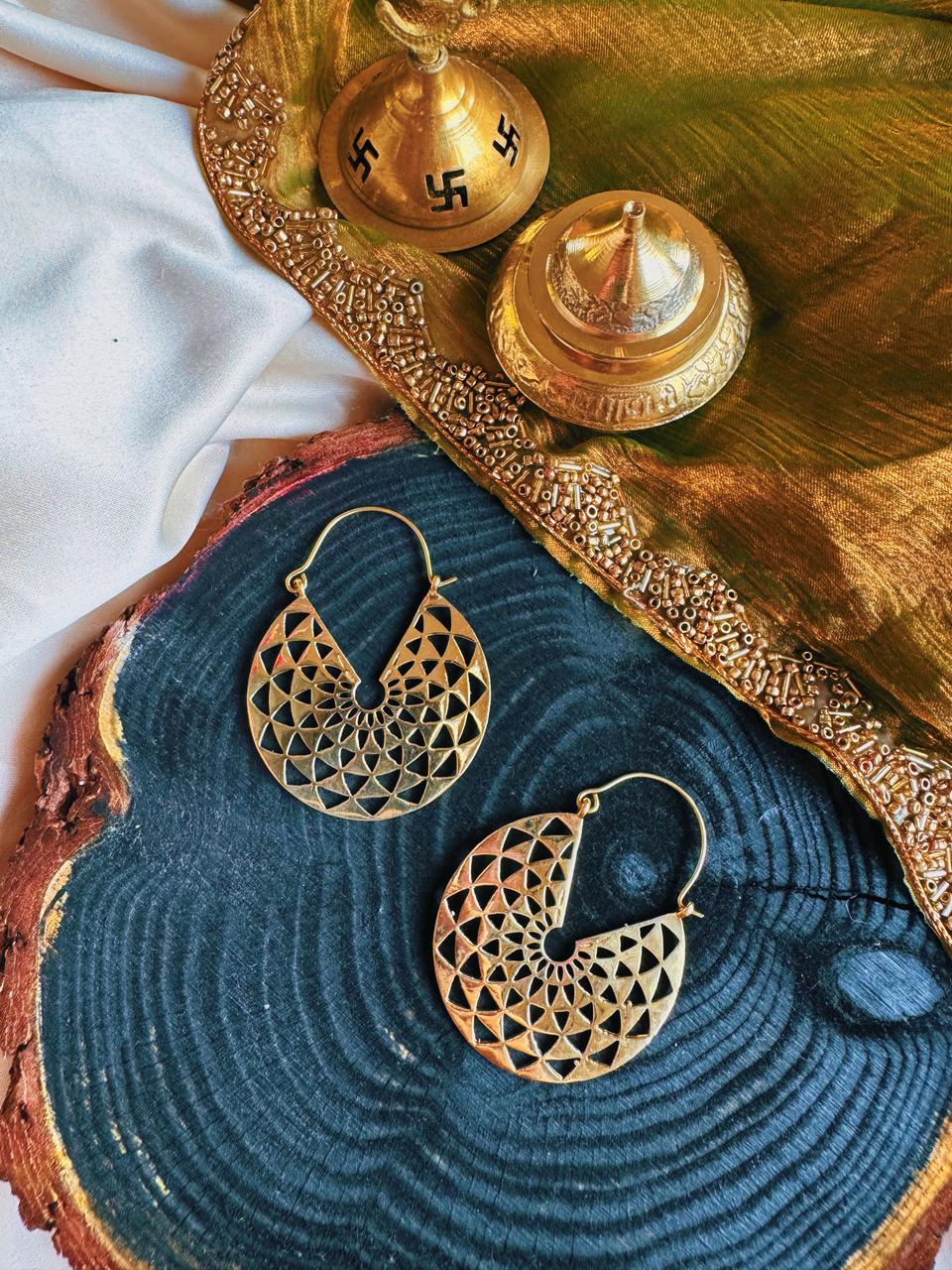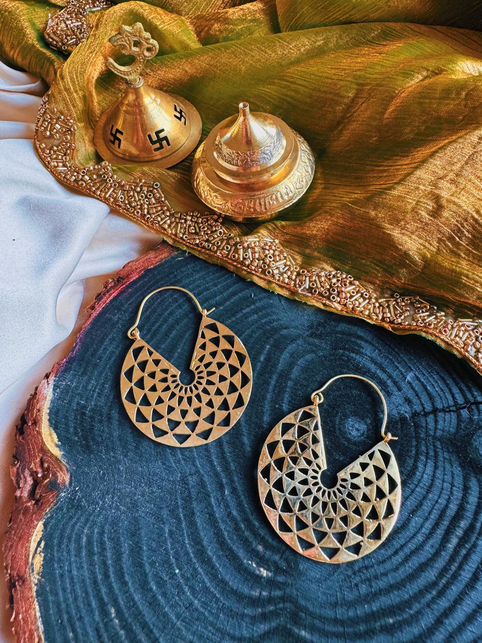 Discover the harmony of the Solaris Earrings with their intricate mandala hoops, reflecting inner balance and serenity. Elevate your style and energy with these beautiful earrings. Expertly crafted and designed to inspire.