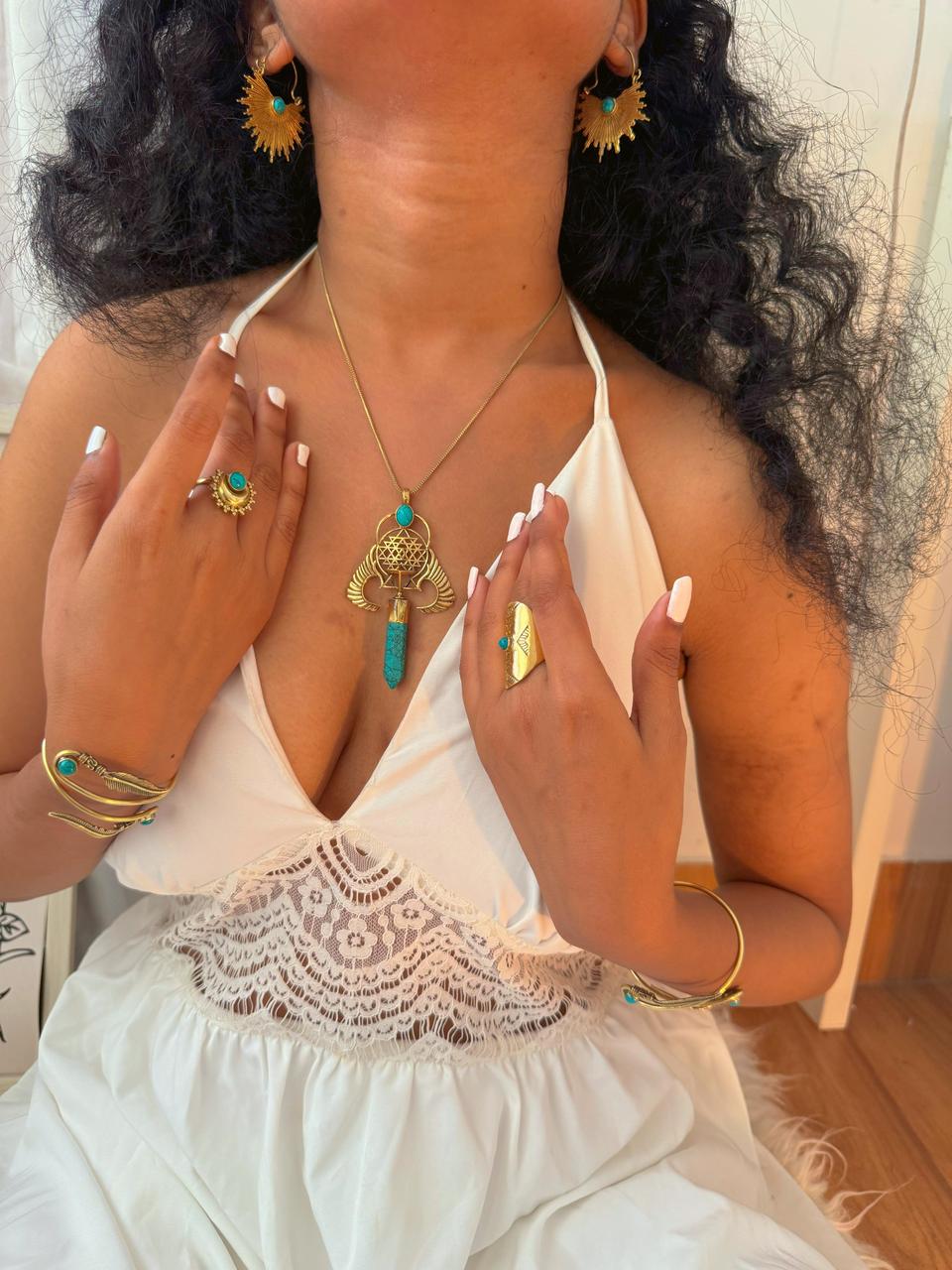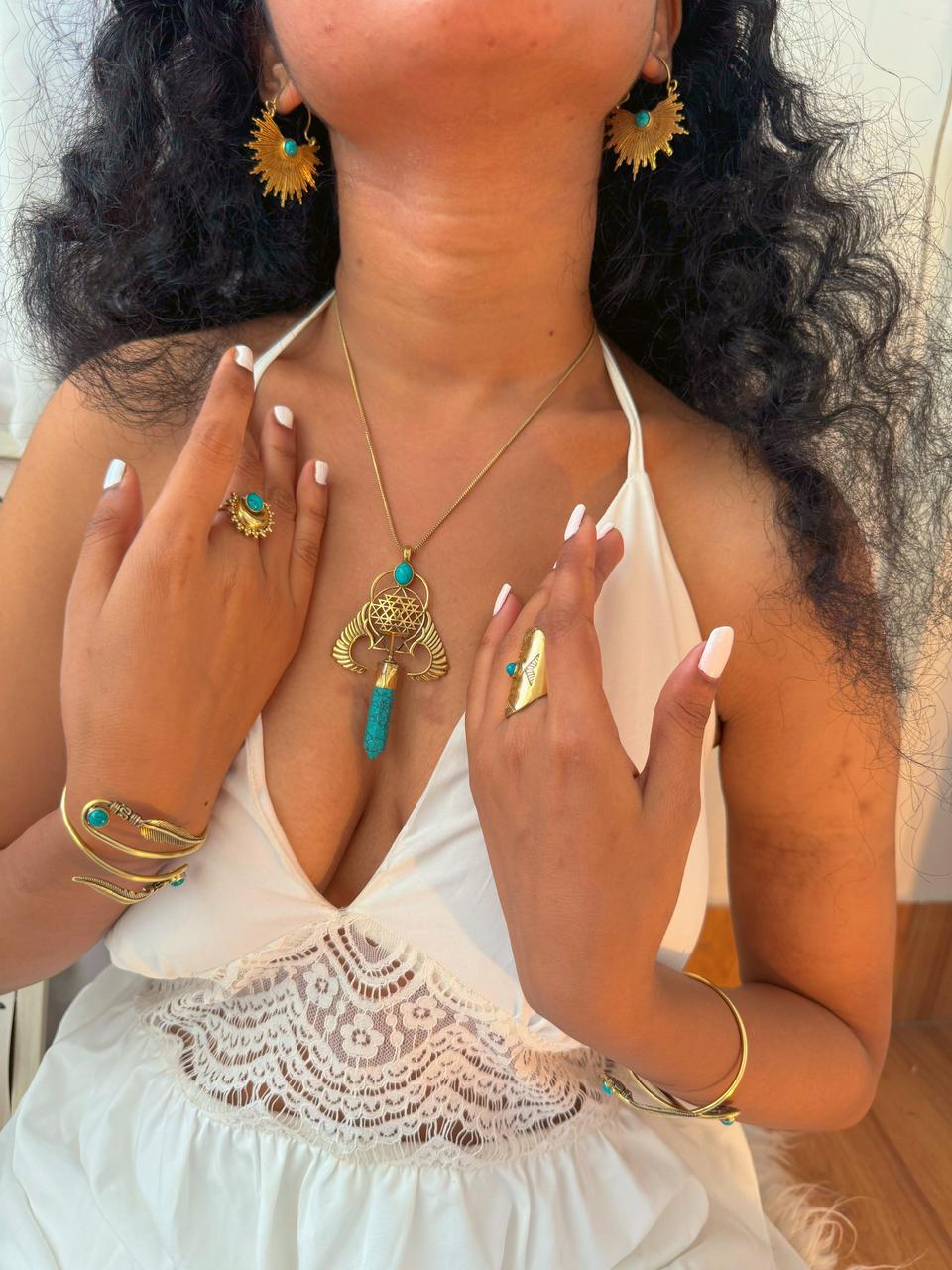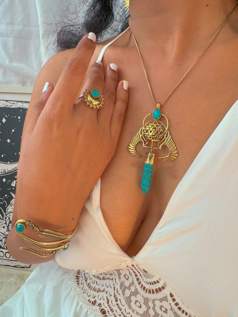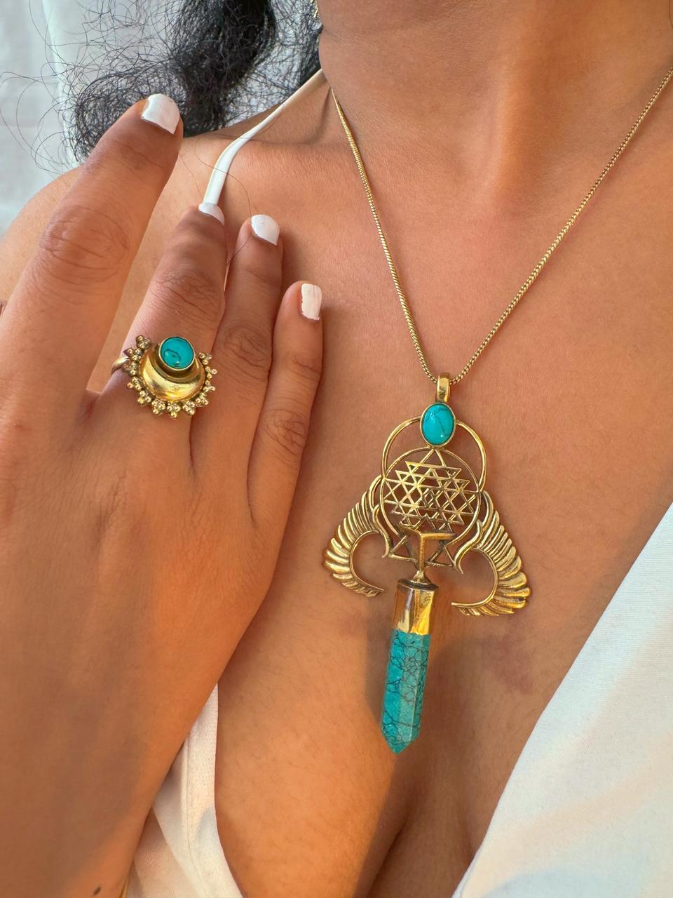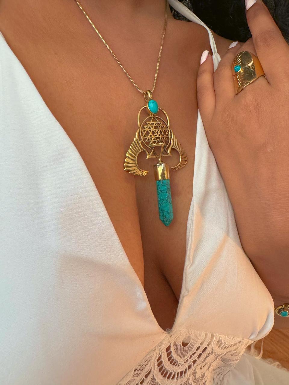 Embrace freedom and balance with this exquisite necklace, featuring delicate wings, a detailed mandala, and a vibrant turquoise stone. A symbol of peace and inner harmony, perfect for any free spirit.