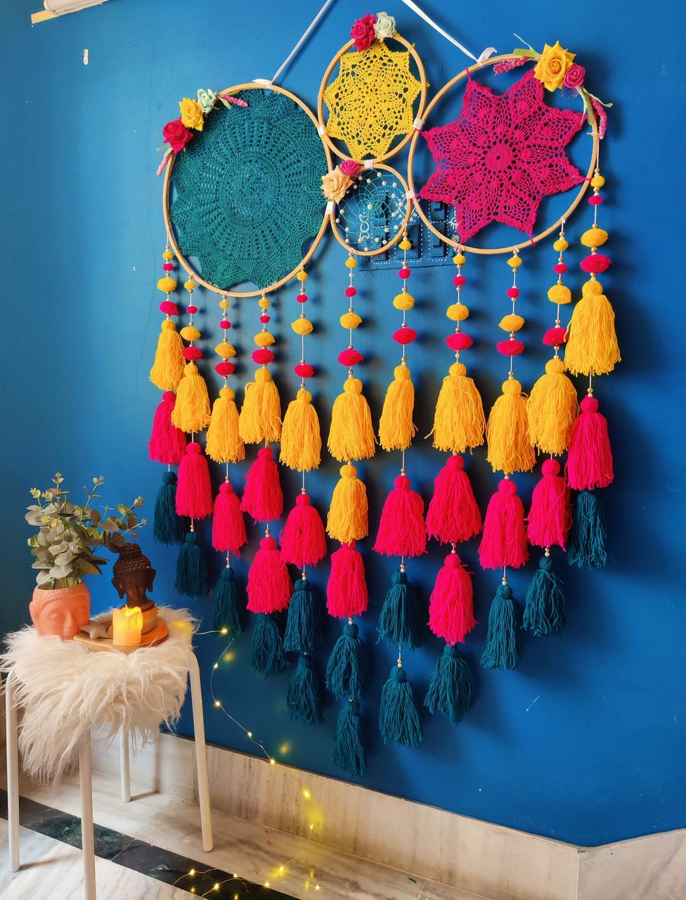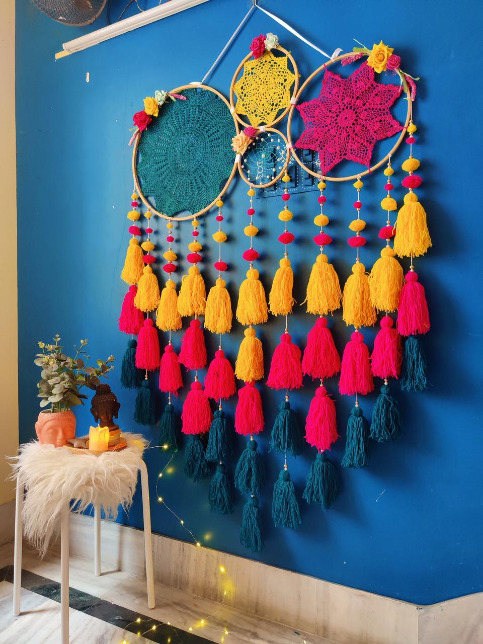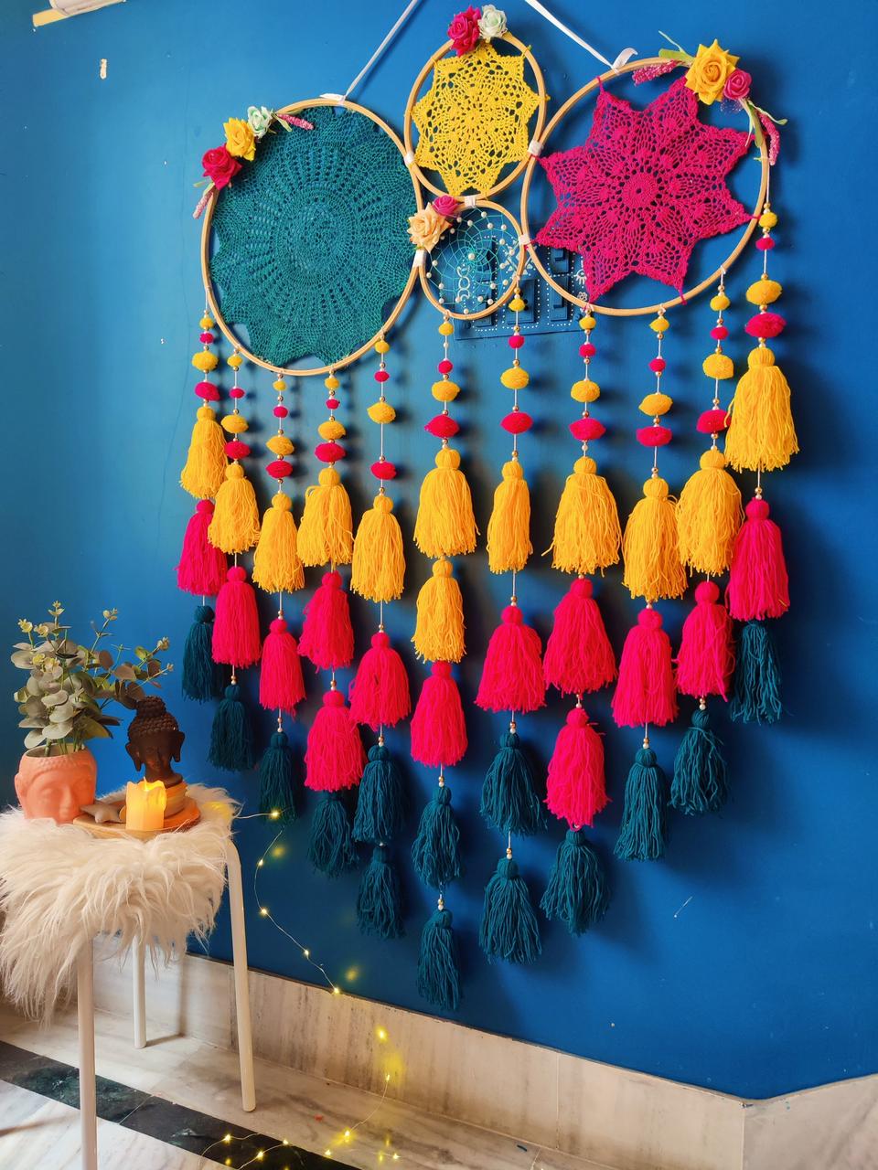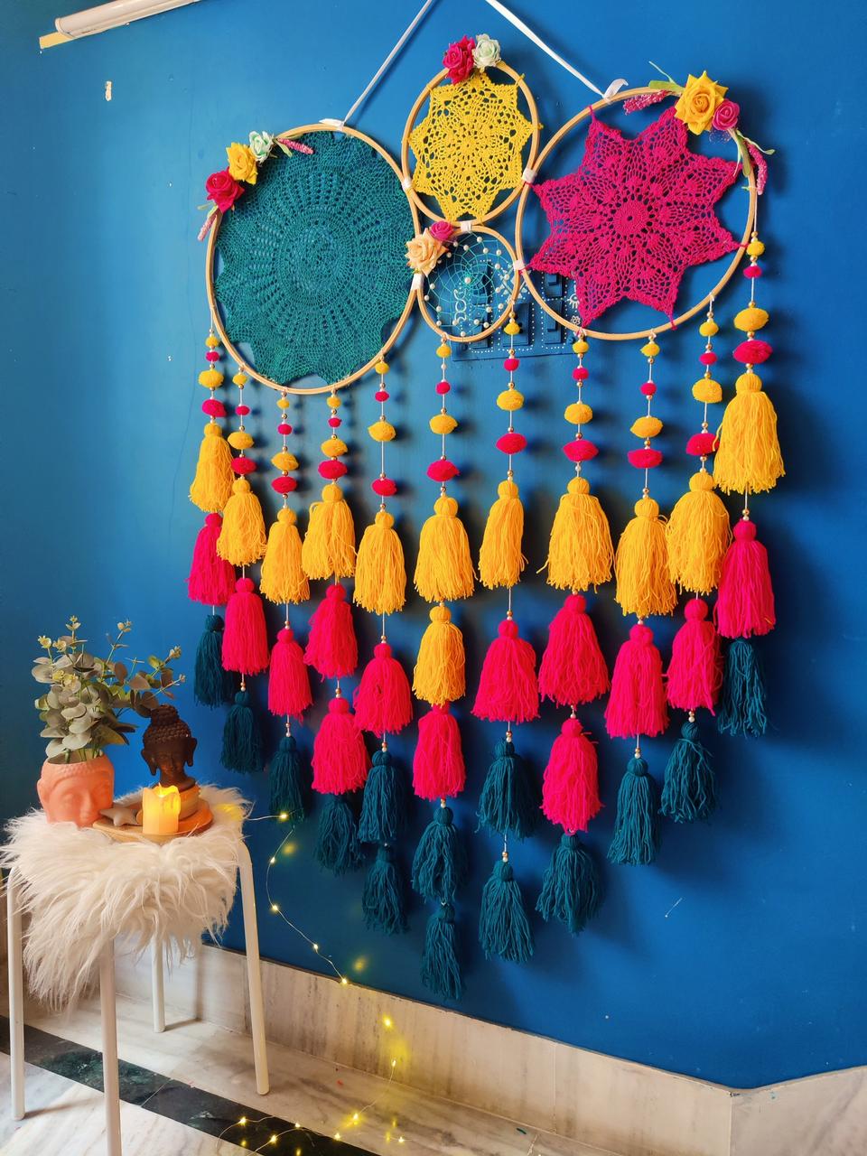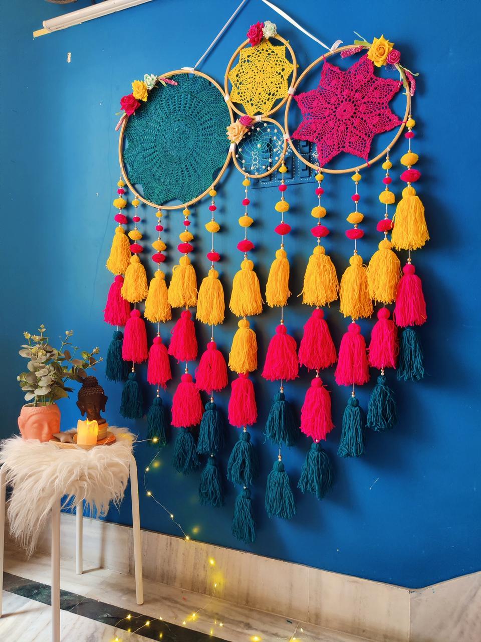• Note- crochets design may or may not be same. Tassels and pompoms are movable. You are move them up and down as per your likings once you get it.