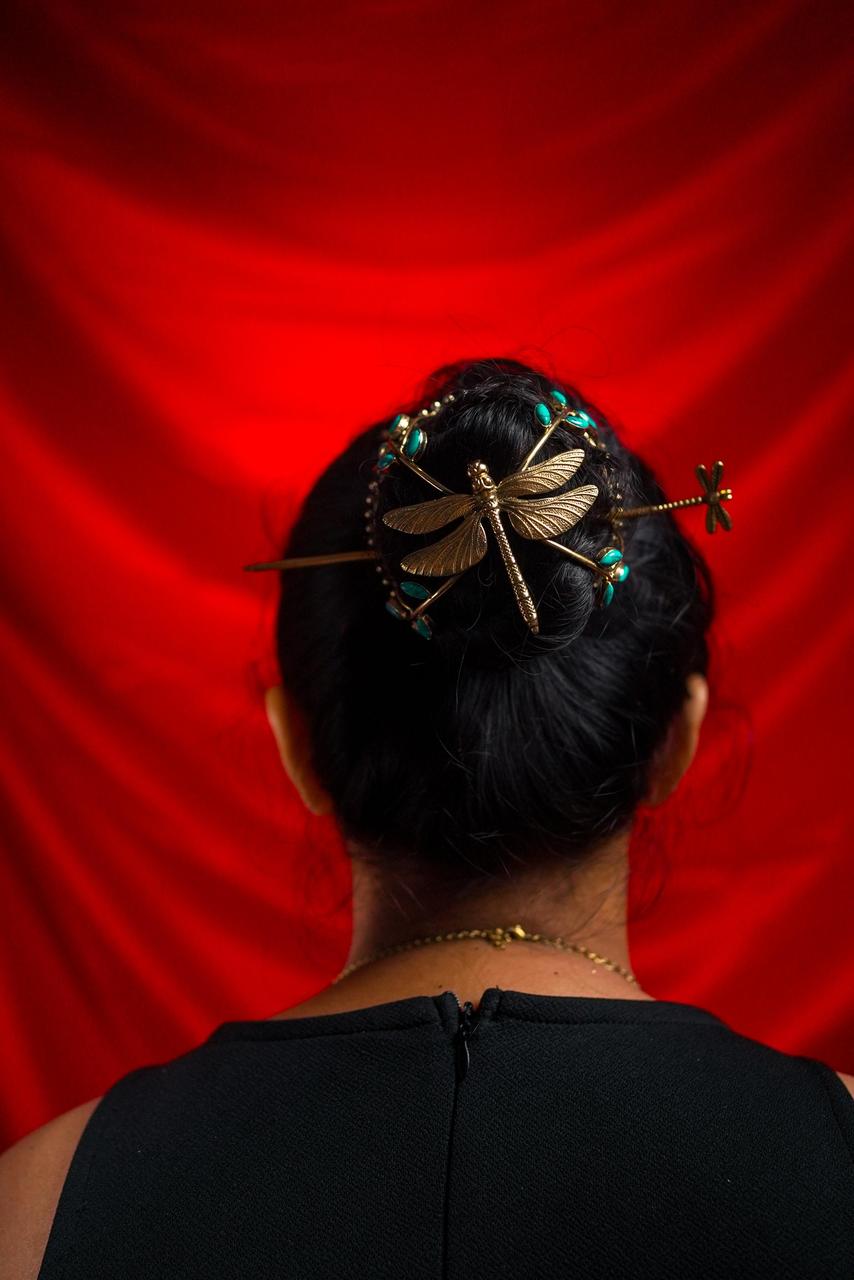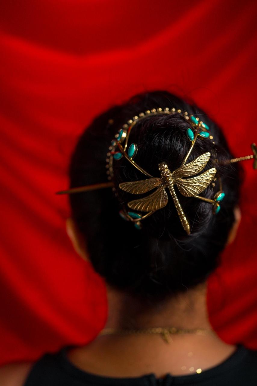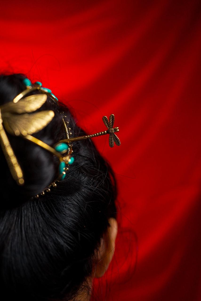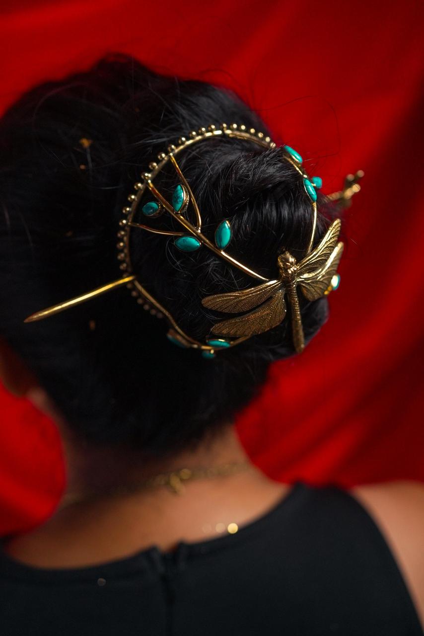 Dragonfly Turquoise Hair Cage Bun