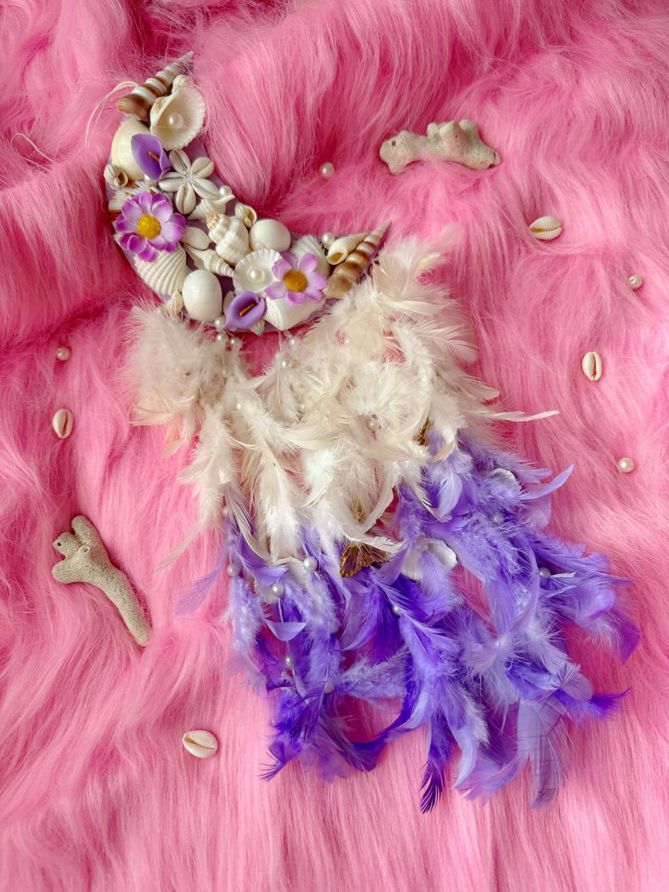 Add a touch of bohemian elegance to your living space with our exquisite Handcrafted Moon Flora Hanging. This unique piece is designed to captivate and inspire, blending natural elements with vibrant hues to create a stunning visual display.